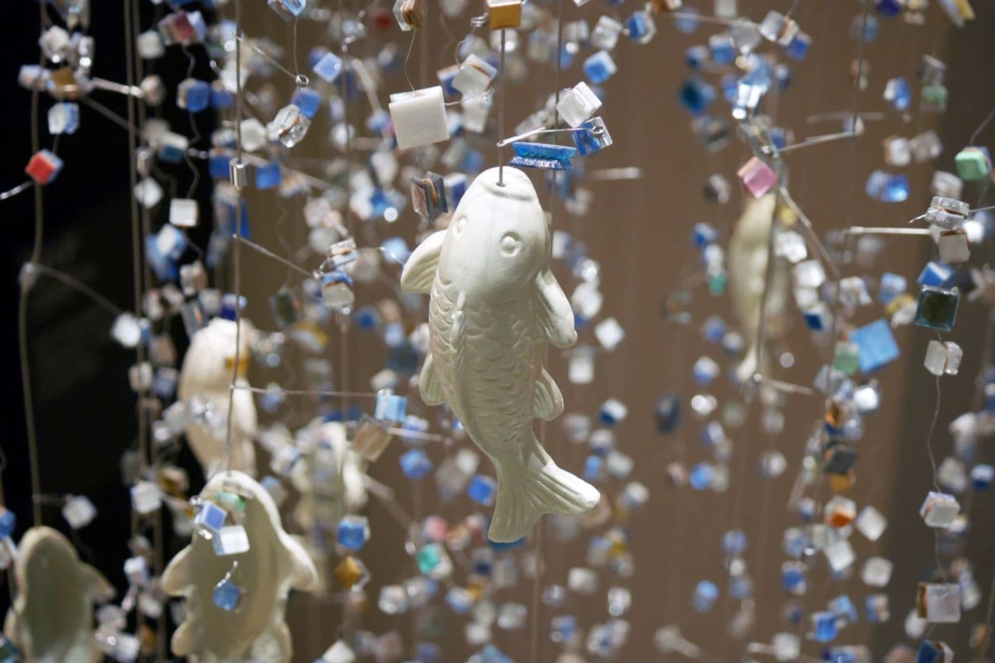 磁器とガラス製のモザイクタイル+セラミック製の鯉